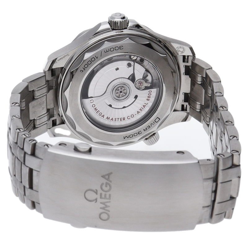 オメガの定番ダイバーズウォッチです。2018年に発表された最新型です。オメガ最新式の機械であるキャリバー8800を搭載しマスターコーアクシャル化されました。シースルーバックとなり、中の機械を見て楽しむ事ができます。
