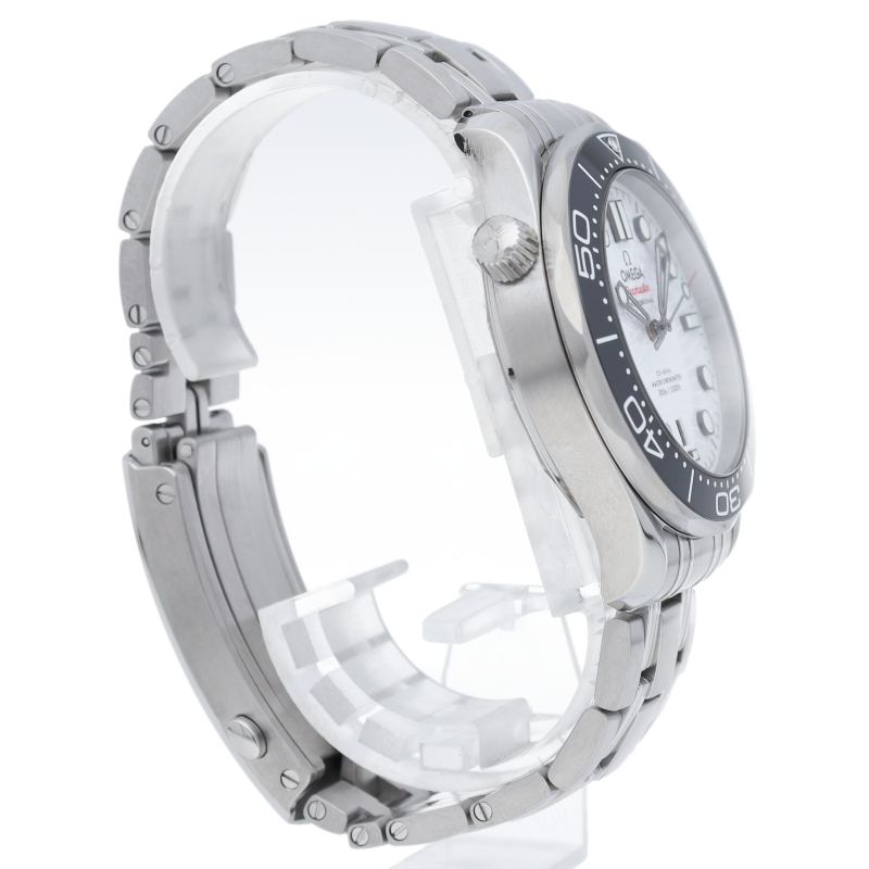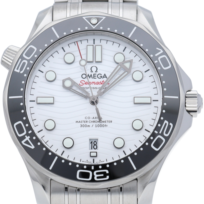 オメガの定番ダイバーズウォッチです。2018年のモデルチェンジ以降も大人気の現行シリーズにホワイトダイヤルが追加されました。オメガ開発のコーアクシャルムーブメント「Cal.8800」を搭載しており、300M防水にエスケープバルブなどケースもダイバーズとしてハイスペックな造りになっています。