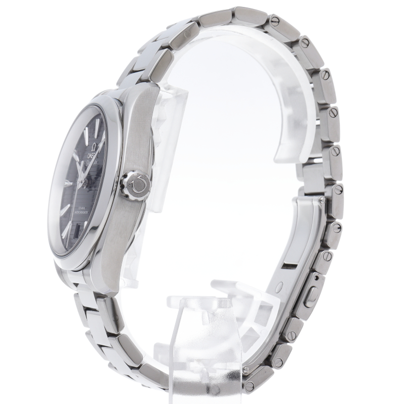 海に携わってきたオメガの長い歴史を代表する「シーマスター アクアテラ」 コレクション。シンメトリックな38mmのケースはステンレススティール製で、ケースバックにはウェーブ模様で縁取られたデザインが施されています。