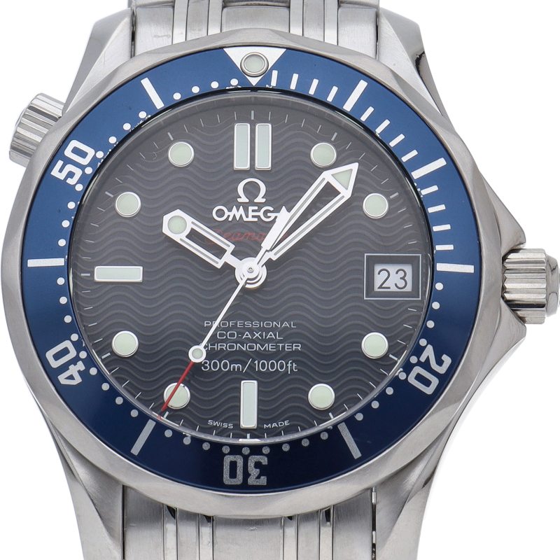 オメガを代表する人気ダイバーズウォッチ「シーマスター」。ヘリウムエスケープバルブを備えた本格的な多機能ダイバーズモデル。コーアクシャルムーブメント搭載。
