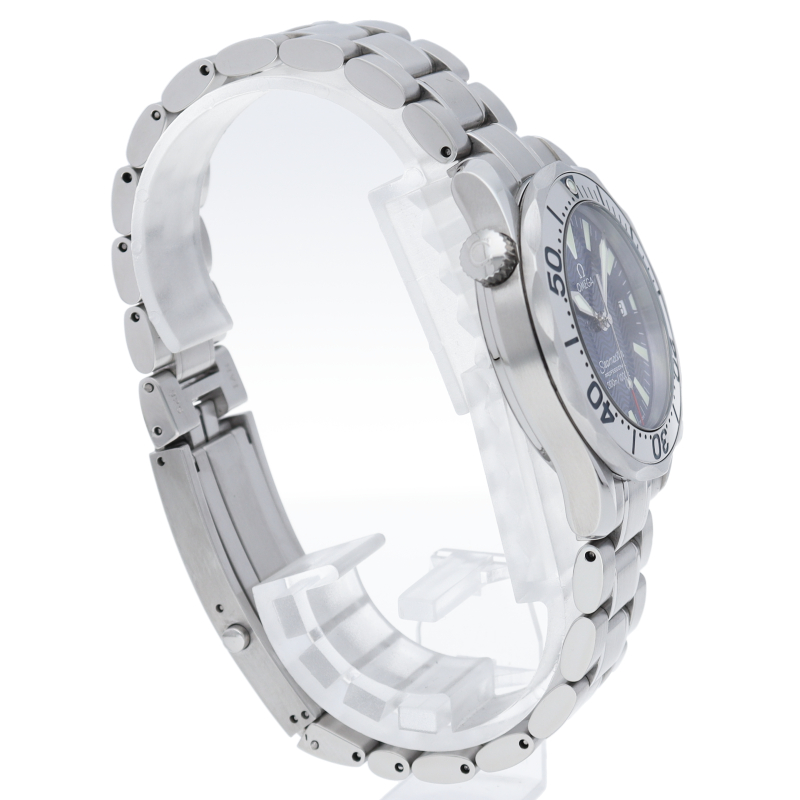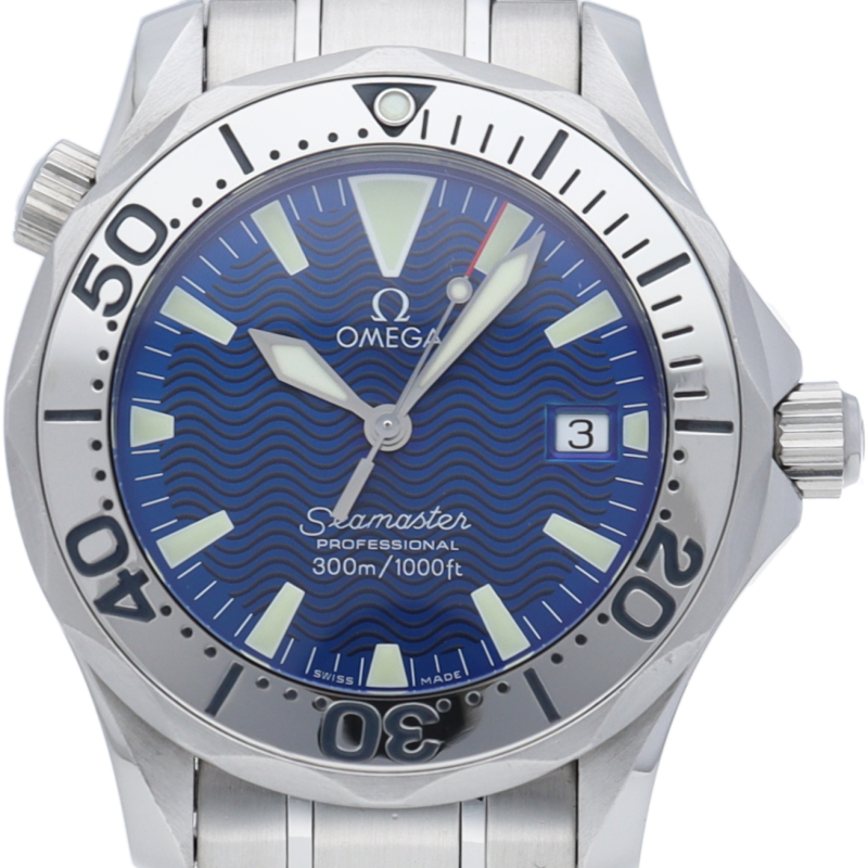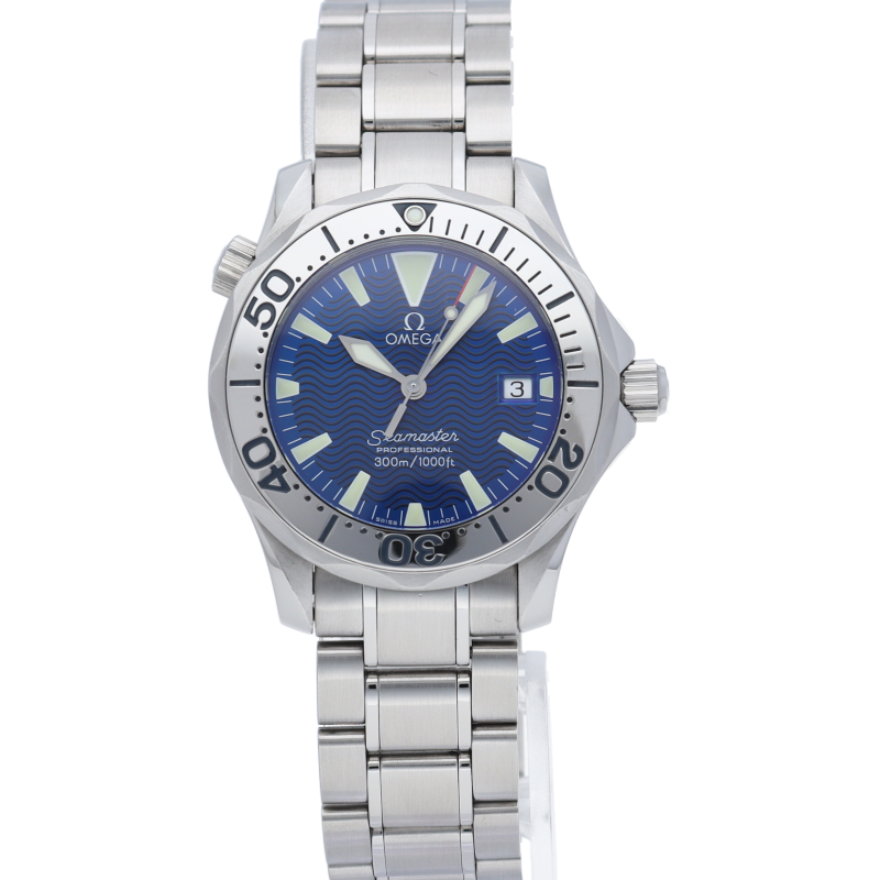 オメガを代表する人気ダイバーズウォッチ「シーマスター」。ヘリウムエスケープバルブを備えた本格的な多機能ダイバーズモデル。海を思わせるブルーのダイヤルが素敵です。