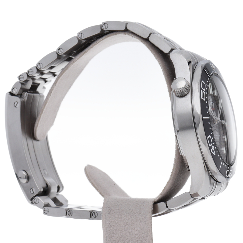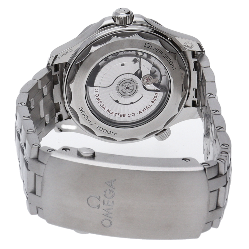 オメガの定番ダイバーズウォッチです。2018年に発表された最新型です。オメガ最新式の機械であるキャリバー8800を搭載しマスタークロノメーター化されました。シースルーバックとなり、中の機械を見て楽しむ事ができます。