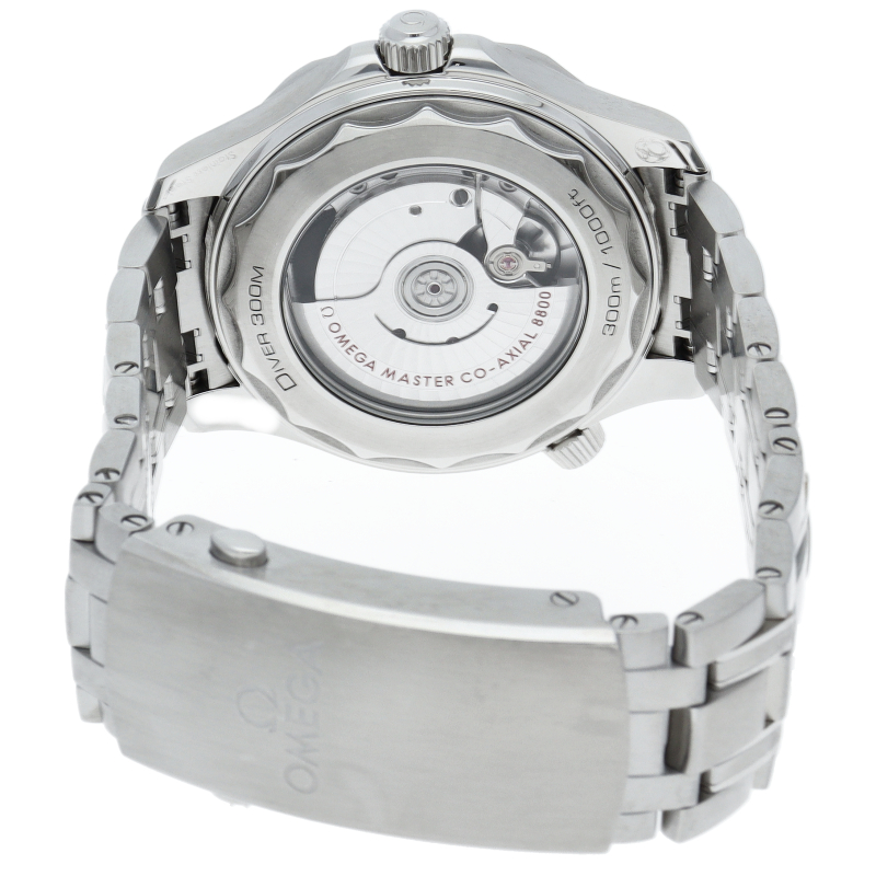 オメガの定番ダイバーズウォッチです。2018年に発表された最新型です。オメガ最新式の機械であるキャリバー8800を搭載しマスタークロノメーター化されました。シースルーバックとなり、中の機械を見て楽しむ事ができます。
