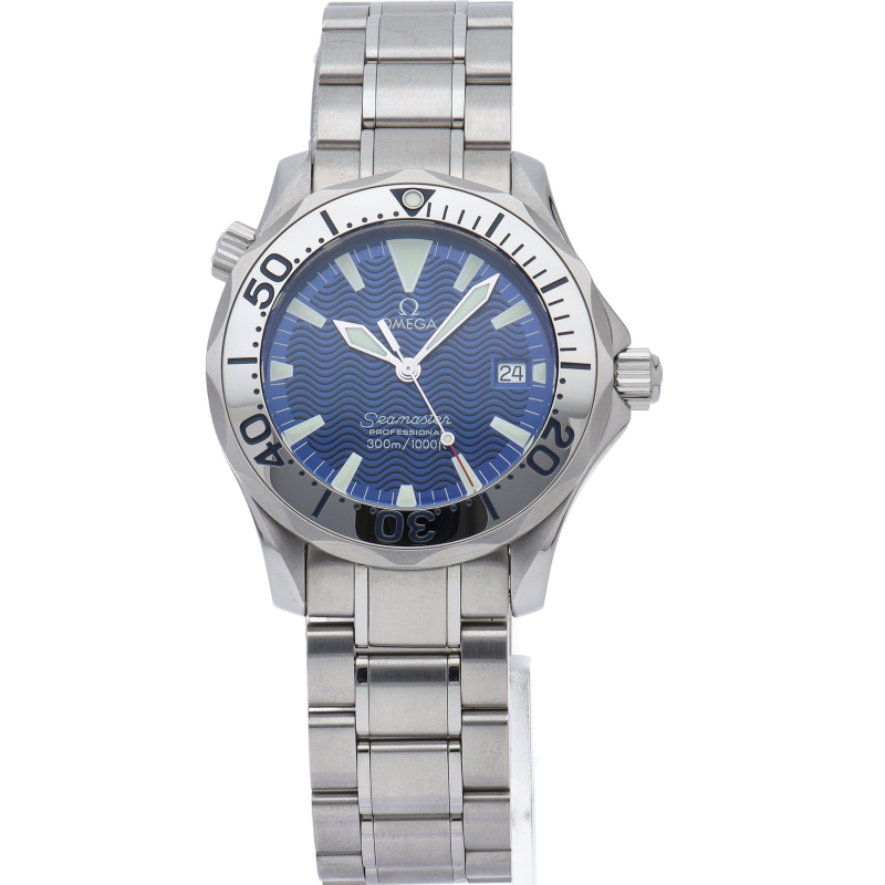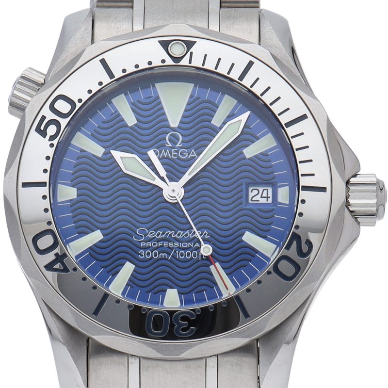オメガを代表する人気ダイバーズウォッチ「シーマスター」。ヘリウムエスケープバルブを備えた本格的な多機能ダイバーズモデル。海を思わせるブルーのダイヤルが素敵です。
