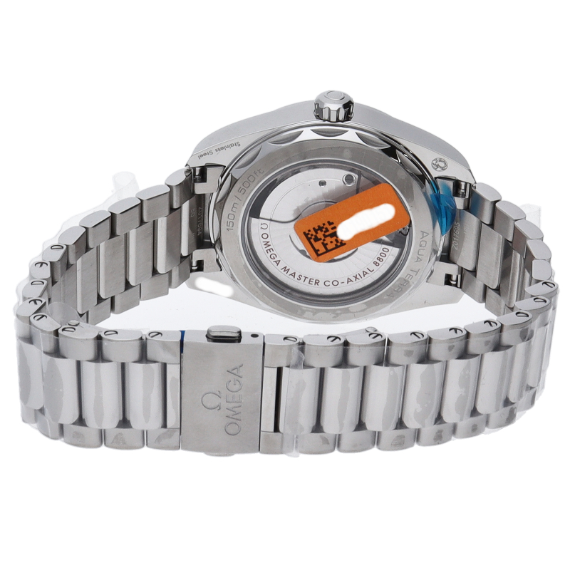 オメガと海の豊かな歴史にオマージュを捧げる「シーマスター アクアテラ」。シンメトリックな38mmケースはステンレススティール製で、ポリッシュ仕上げのリュウズ、ケースバックにはウェーブ模様で縁取られたデザインが施されています。スイス連邦計量・認定局(METAS)認定の業界最高水準を誇るオメガ コーアクシャル マスター クロノメーター キャリバー8800が搭載。