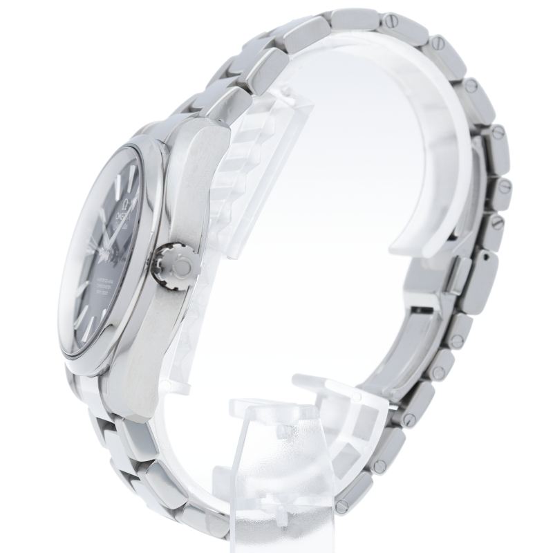 上品でどんなシーンでも使えるシンプルなデザインが特徴の「アクアテラ」。視認性に優れたアロー針が使用されファッショナブルでスポーティーな1本。仕様が変更されたストライプ模様の文字盤です。