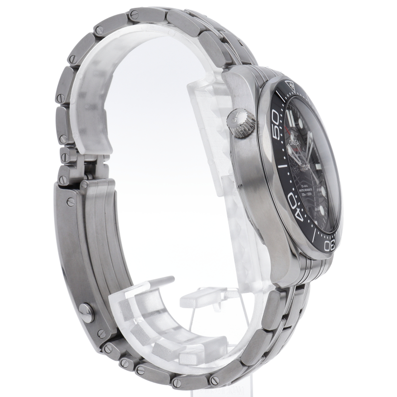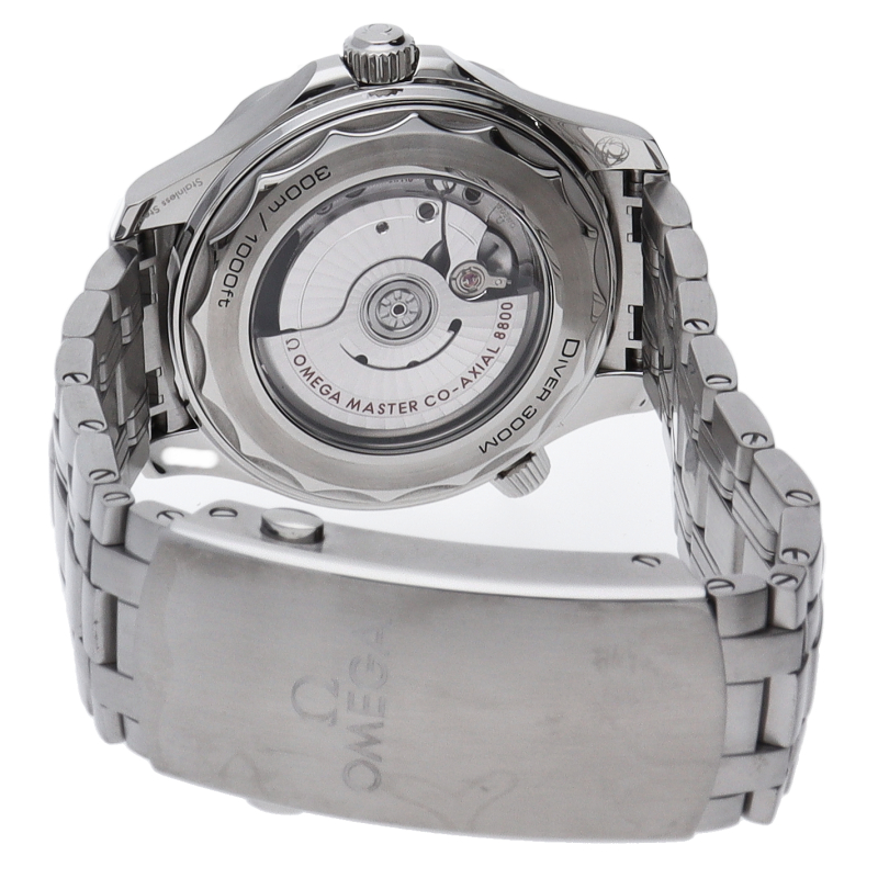 オメガの定番ダイバーズウォッチです。2018年に発表された最新型です。オメガ最新式の機械であるキャリバー8800を搭載しマスタークロノメーター化されました。シースルーバックとなり、中の機械を見て楽しむ事ができます。