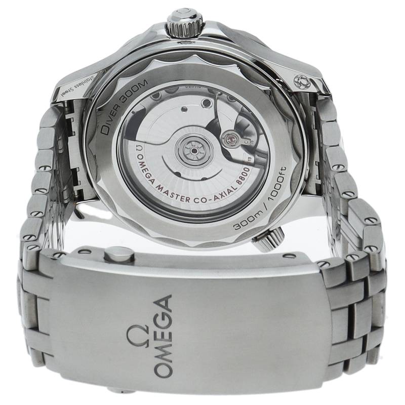 オメガの定番ダイバーズウォッチです。2018年に発表された最新型です。オメガ最新式の機械であるキャリバー8800を搭載しマスタークロノメーター化されました。シースルーバックとなり、中の機械を見て楽しむ事ができます。
