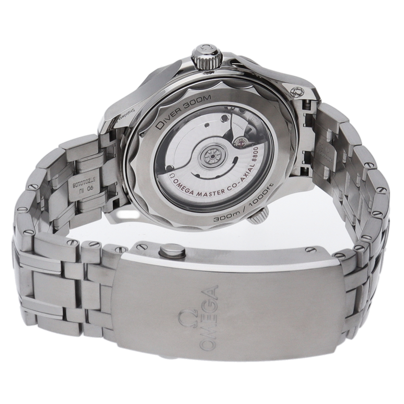 オメガの定番ダイバーズウォッチです。2018年に発表された最新型です。オメガ最新式の機械であるキャリバー8800を搭載しマスタークロノメーター化されました。シースルーバックとなり、中の機械を見て楽しむ事ができます。