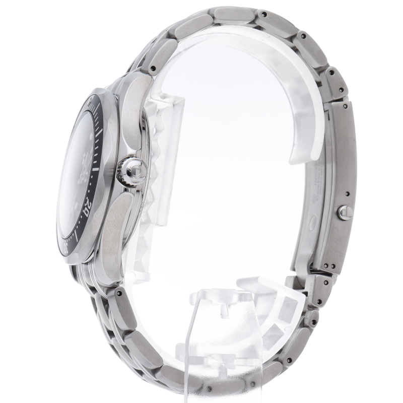 ブラックのセラミック製逆回転防止ベゼルは、ヘリウムエスケープバルブを備えた、直径36.25mmのステンレススティール製ケースに取り付けられています。このモデルには、ステンレススティール製ブレスレットが付いています。クロノメーターとして認定されているこのモデルは、コーアクシャル・キャリバー2500を搭載しています。