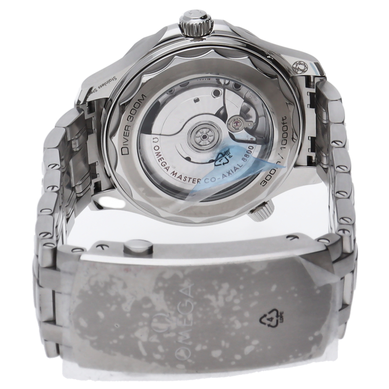 オメガの定番ダイバーズウォッチです。2018年に発表された最新型です。オメガ最新式の機械であるキャリバー8800を搭載しマスターコーアクシャル化されました。シースルーバックとなり、中の機械を見て楽しむ事ができます。