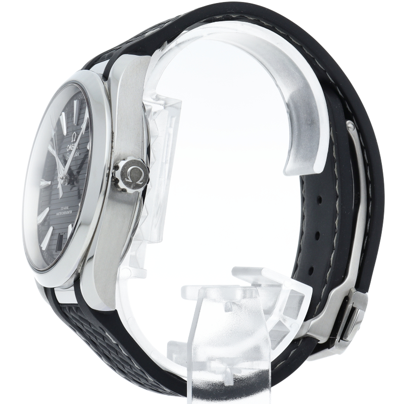 海に携わってきたオメガの長い歴史を代表する「シーマスター アクアテラ」 コレクション。シンメトリックな41mmのケースはステンレススティール製で、ケースバックにはウェーブ模様で縁取られたデザインが施されています。
