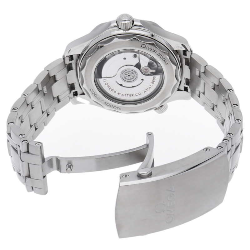 オメガの定番ダイバーズウォッチです。2018年に発表された最新型です。オメガ最新式の機械であるキャリバー8800を搭載しマスタークロノメーター化されました。シースルーバックとなり、中の機械を見て楽しむ事ができます。