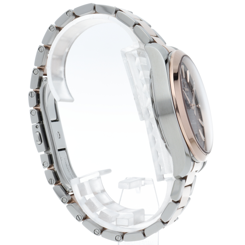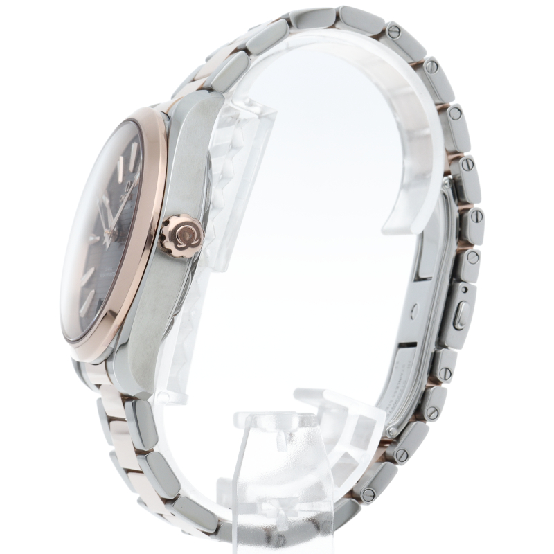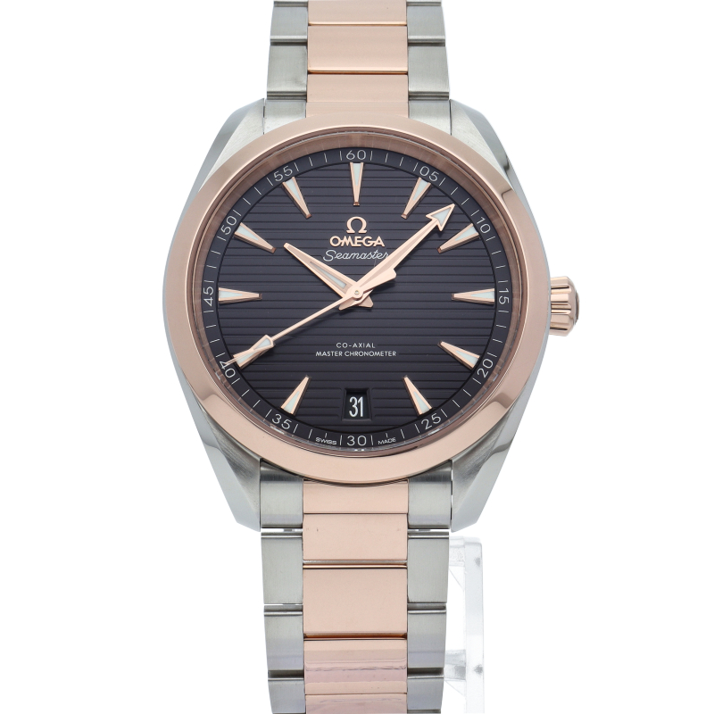 海に携わってきたオメガの長い歴史を代表する「シーマスター アクアテラ」 コレクション。サンブラッシュ仕上げのグレーのダイアルは、豪華ヨットのウッドデッキをイメージさせる印象的なデザイン「チークコンセプト」と呼ばれる横ストライプのモチーフが採用されています。スイス連邦計量・認定局(METAS)認定の最高水準を誇るオメガ コーアクシャル マスター クロノメーター キャリバー8900搭載。