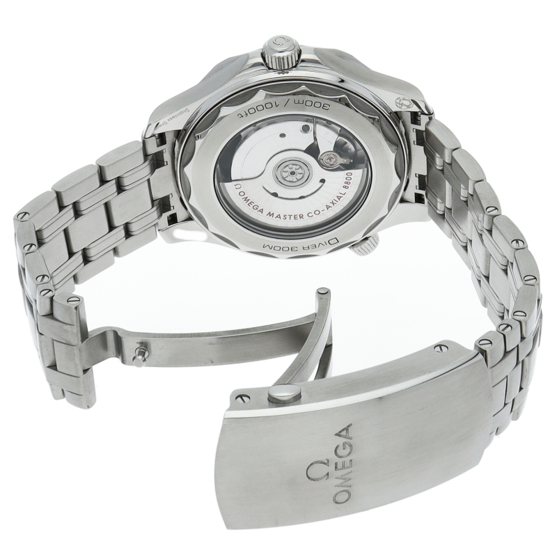 オメガの定番ダイバーズウォッチです。2018年に発表された最新型です。オメガ最新式の機械であるキャリバー8800を搭載しマスタークロノメーター化されました。シースルーバックとなり、中の機械を見て楽しむ事ができます。