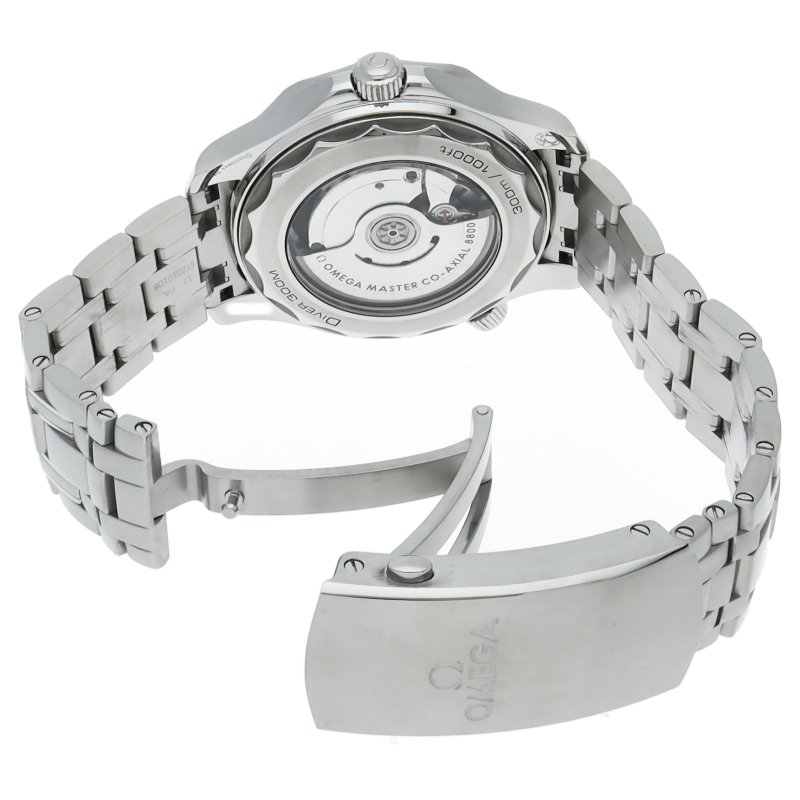 オメガの定番ダイバーズウォッチです。2018年に発表された最新型です。オメガ最新式の機械であるキャリバー8800を搭載しマスタークロノメーター化されました。シースルーバックとなり、中の機械を見て楽しむ事ができます。