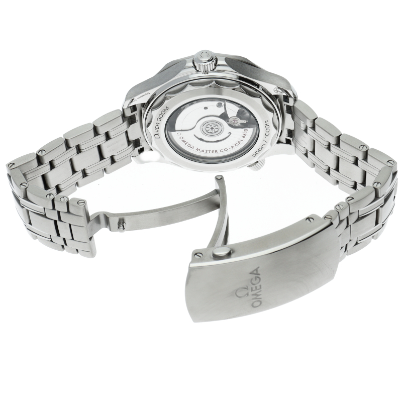 オメガの定番ダイバーズウォッチです。2018年に発表された最新型です。オメガ最新式の機械であるキャリバー8800を搭載しマスタークロノメーター化されました。シースルーバックとなり、中の機械を見て楽しむ事ができます。