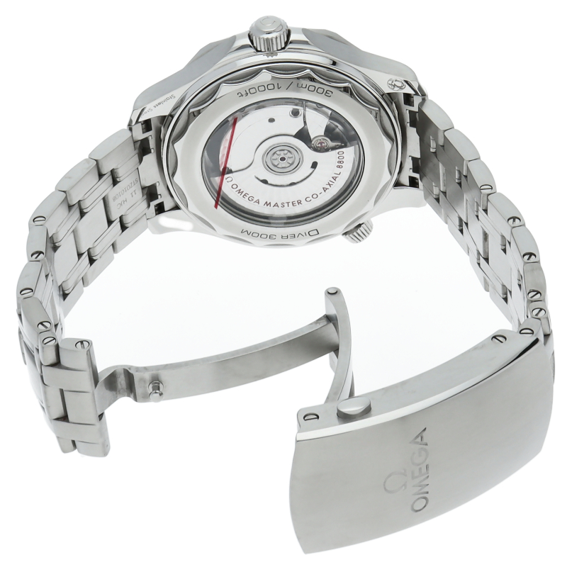 オメガの定番ダイバーズウォッチです。2018年に発表された最新型です。オメガ最新式の機械であるキャリバー8800を搭載しマスターコーアクシャル化されました。シースルーバックとなり、中の機械を見て楽しむ事ができます。
