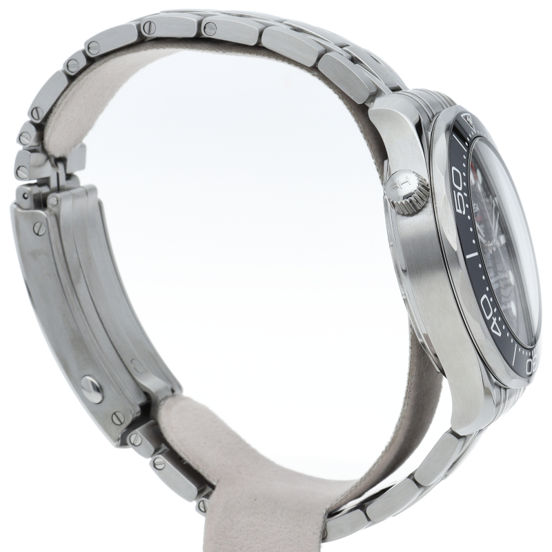 オメガの定番ダイバーズウォッチです。2018年に発表された最新型です。オメガ最新式の機械であるキャリバー8800を搭載しマスタークロノメーター化されました。シースルーバックとなり、中の機械を見て楽しむ事ができます。