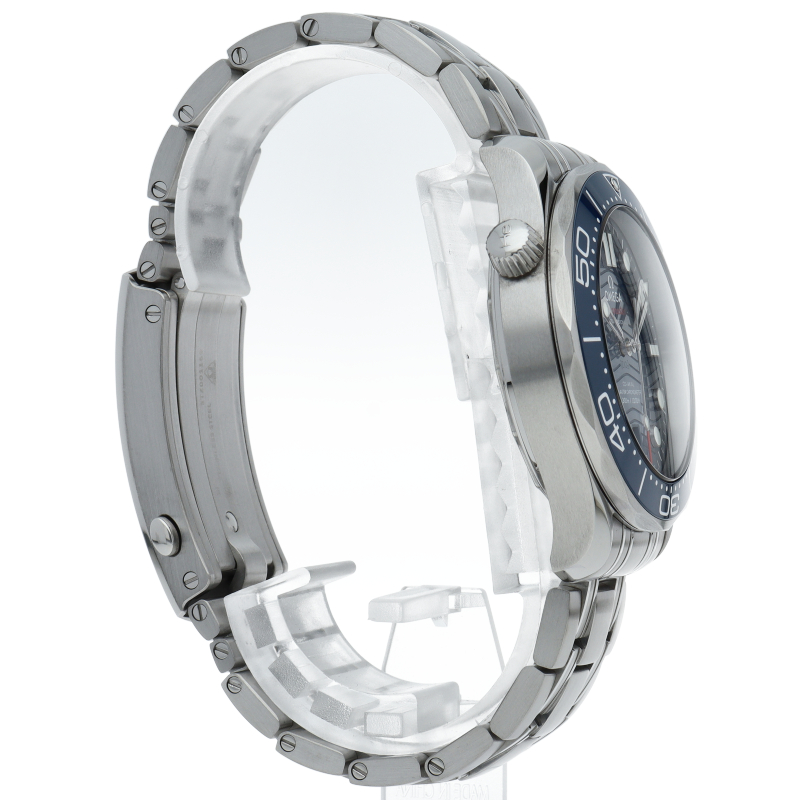 オメガの定番ダイバーズウォッチです。2018年に発表された最新型です。オメガ最新式の機械であるキャリバー8800を搭載しマスターコーアクシャル化されました。シースルーバックとなり、中の機械を見て楽しむ事ができます。