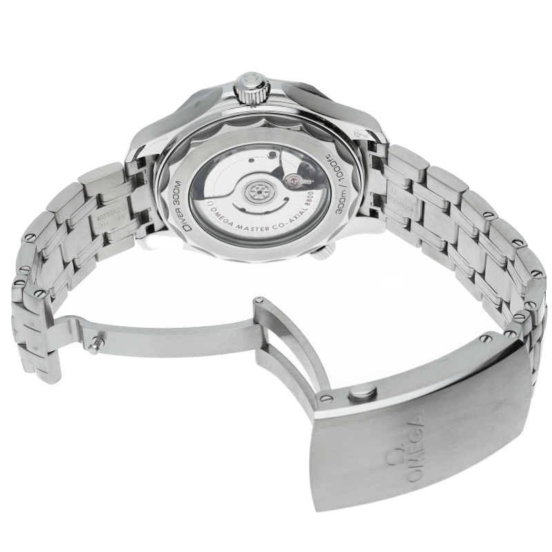 オメガの定番ダイバーズウォッチです。2018年に発表された最新型です。オメガ最新式の機械であるキャリバー8800を搭載しマスタークロノメーター化されました。シースルーバックとなり、中の機械を見て楽しむ事ができます。