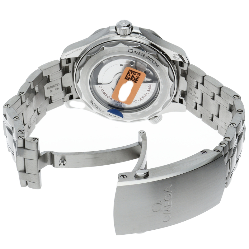 オメガの定番ダイバーズウォッチです。2018年に発表された最新型です。オメガ最新式の機械であるキャリバー8800を搭載しマスターコーアクシャル化されました。シースルーバックとなり、中の機械を見て楽しむ事ができます。