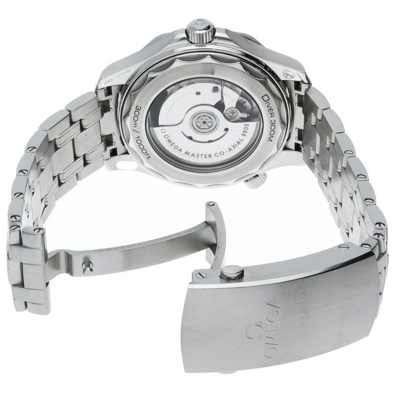 オメガの定番ダイバーズウォッチです。2018年に発表された最新型です。オメガ最新式の機械であるキャリバー8800を搭載しマスタークロノメーター化されました。シースルーバックとなり、中の機械を見て楽しむ事ができます。