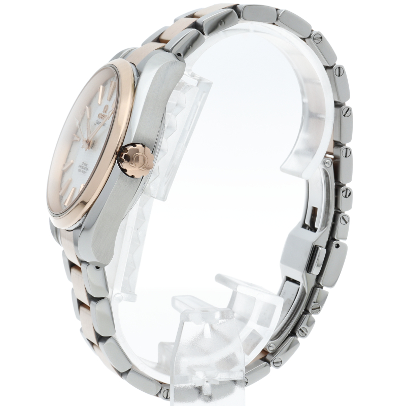 上品でどんなシーンでも使えるシンプルなデザインが特徴の「アクアテラ」。視認性に優れたアロー針が使用されファッショナブルでスポーティーな1本。仕様が変更されたストライブ模様の文字盤です。