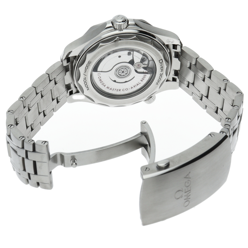 オメガの定番ダイバーズウォッチです。2018年に発表された最新型です。オメガ最新式の機械であるキャリバー8800を搭載しマスターコーアクシャル化されました。シースルーバックとなり、中の機械を見て楽しむ事ができます。