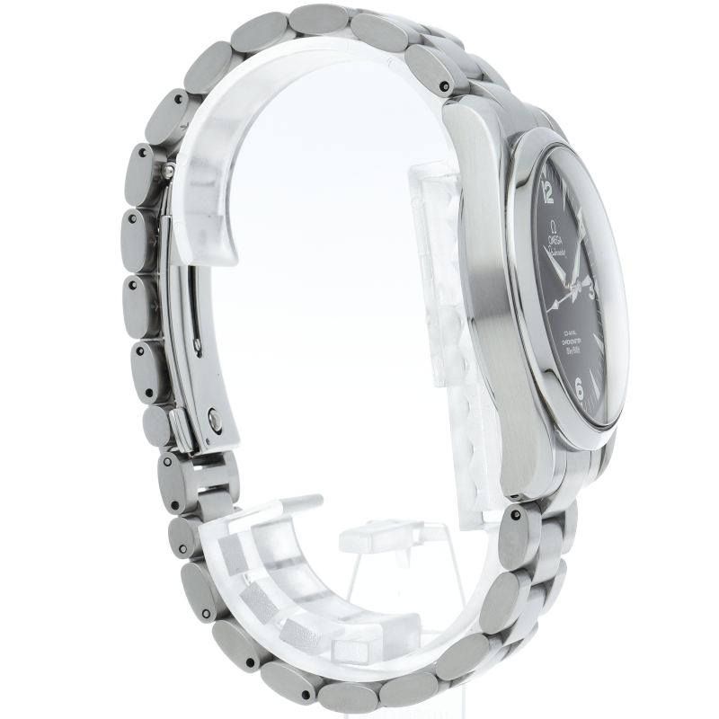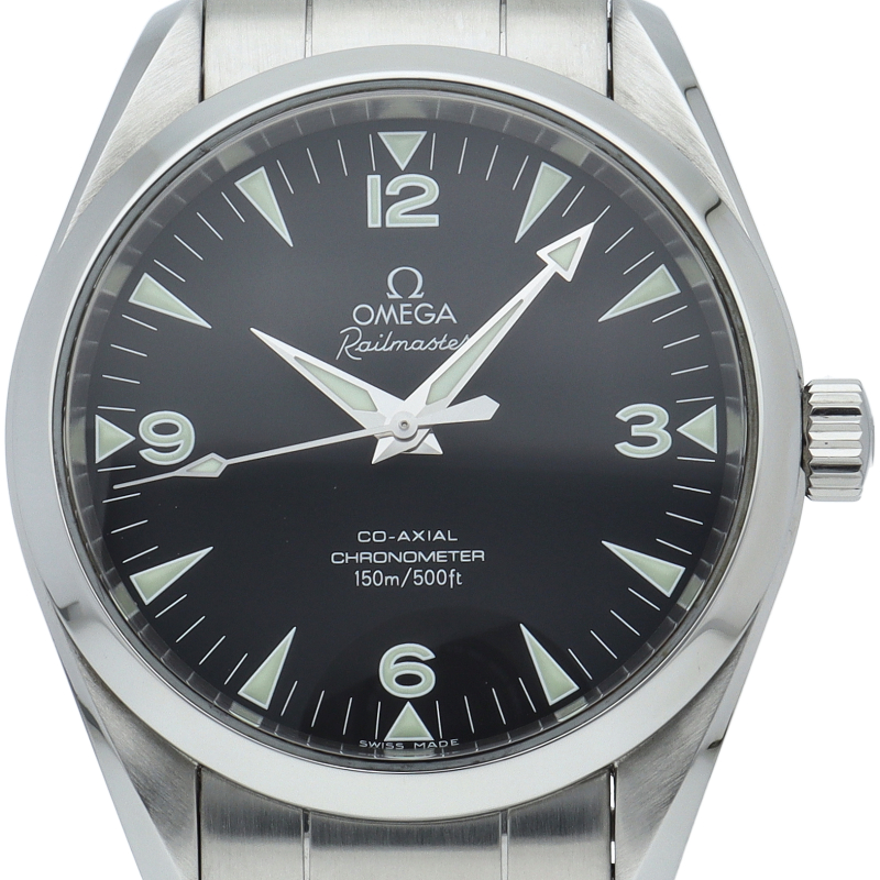 シーマスターアクアテラの派生モデルとして復活を果たしたレイルマスター。ネーミング通り鉄道時計モデルらしく視認性を最大限に強調したダイヤルが特徴的といえます。150m防水、ねじ込み式リューズなど基本スペックはアクアテラと同様です。