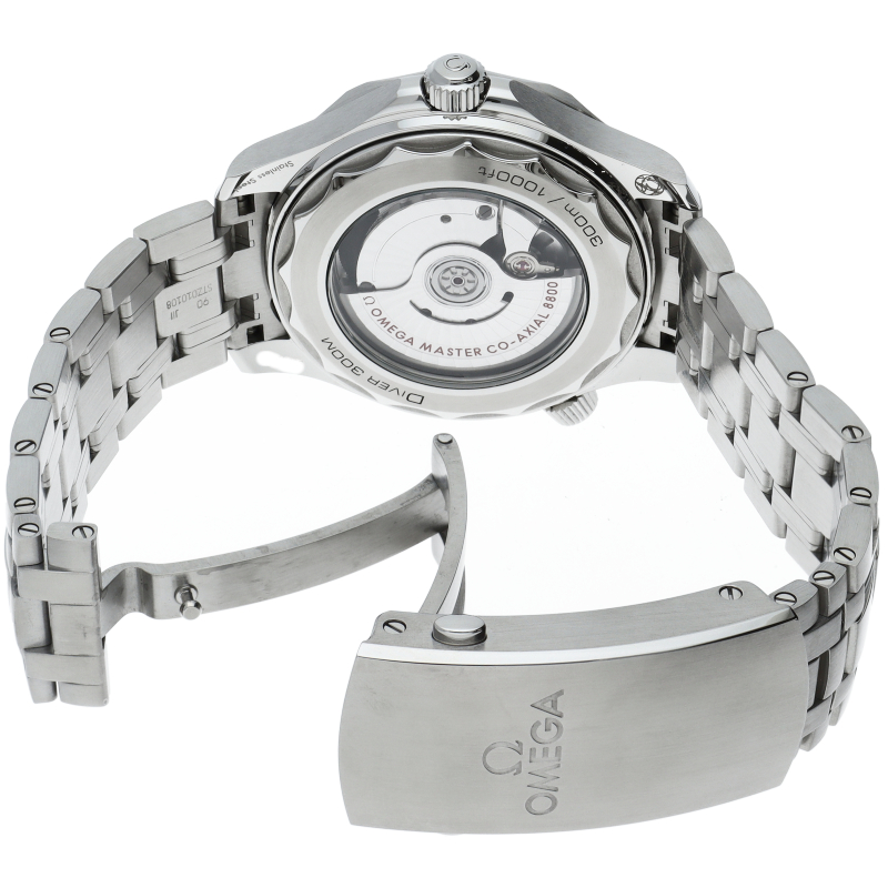 オメガの定番ダイバーズウォッチです。2018年に発表された最新型です。オメガ最新式の機械であるキャリバー8800を搭載しマスタークロノメーター化されました。シースルーバックとなり、中の機械を見て楽しむ事ができます。