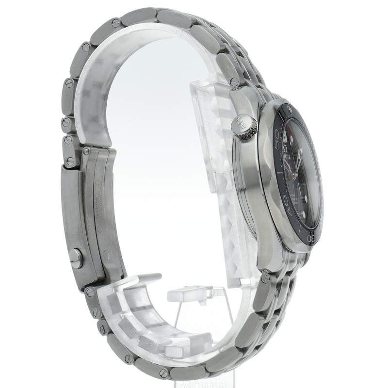 ブラックのセラミック製逆回転防止ベゼルは、ヘリウムエスケープバルブを備えた、直径36.25mmのステンレススティール製ケースに取り付けられています。このモデルには、ステンレススティール製ブレスレットが付いています。クロノメーターとして認定されているこのモデルは、コーアクシャル・キャリバー2500を搭載しています。