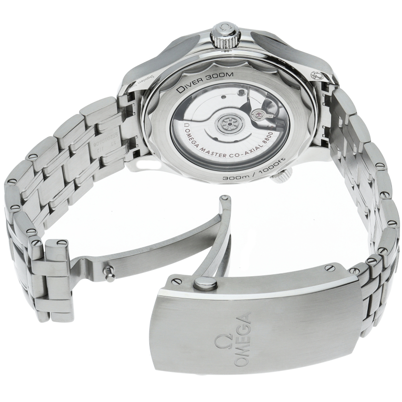 オメガの定番ダイバーズウォッチです。2018年に発表された最新型です。オメガ最新式の機械であるキャリバー8800を搭載しマスターコーアクシャル化されました。シースルーバックとなり、中の機械を見て楽しむ事ができます。