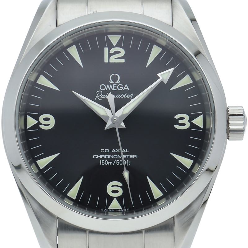 シーマスターアクアテラの派生モデルとして復活を果たしたレイルマスター。ネーミング通り鉄道時計モデルらしく視認性を最大限に強調したダイアルが特徴的といえます。150m防水、ねじ込み式リューズなど基本スペックはアクアテラと同様となります。