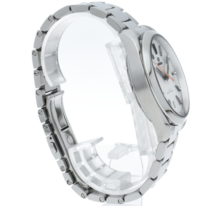 海に携わってきたオメガの長い歴史を代表する「シーマスター アクアテラ」コレクション。シルバーのダイアルは豪華ヨットのウッドデッキをイメージさせる印象的なデザインです。スイス連邦計量・認定局(METAS)認定のオメガコーアクシャルマスタークロノメーター キャリバー8900搭載。