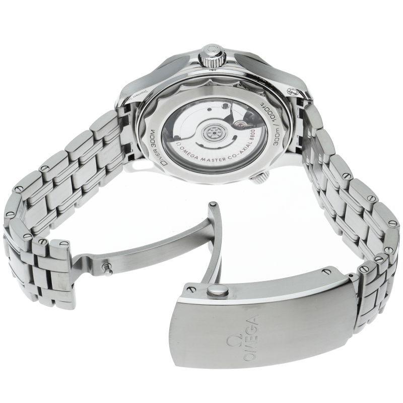 オメガの定番ダイバーズウォッチです。2018年に発表された最新型です。オメガ最新式の機械であるキャリバー8800を搭載しマスタークロノメーター化されました。シースルーバックとなり、中の機械を見て楽しむ事ができます。