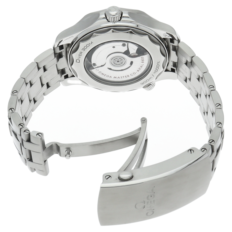 オメガの定番ダイバーズウォッチです。2018年に発表された最新型です。オメガ最新式の機械であるキャリバー8800を搭載しマスターコーアクシャル化されました。シースルーバックとなり、中の機械を見て楽しむ事ができます。