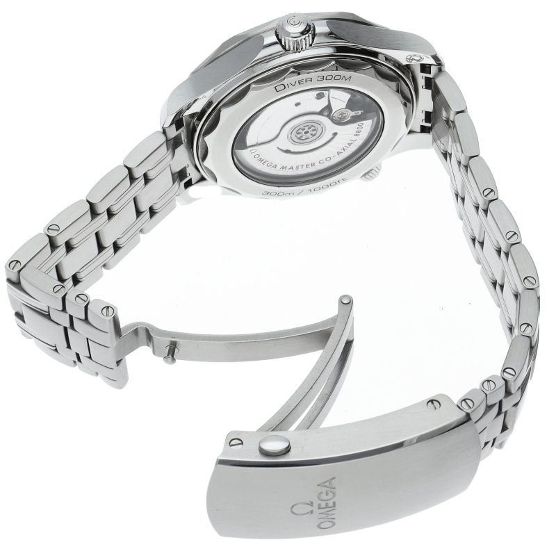 オメガの定番ダイバーズウォッチです。2018年に発表された最新型です。オメガ最新式の機械であるキャリバー8800を搭載しマスタークロノメーター化されました。シースルーバックとなり、中の機械を見て楽しむ事ができます。