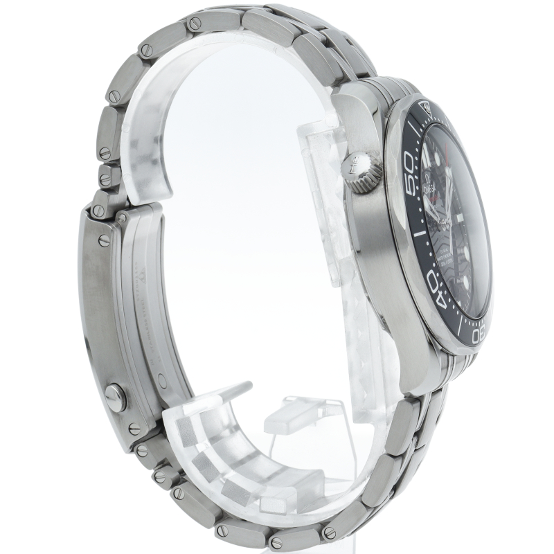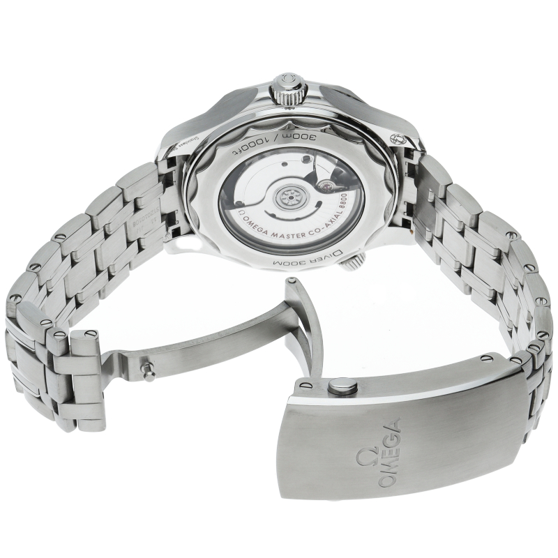 オメガの定番ダイバーズウォッチです。2018年に発表された最新型です。オメガ最新式の機械であるキャリバー8800を搭載しマスタークロノメーター化されました。シースルーバックとなり、中の機械を見て楽しむ事ができます。