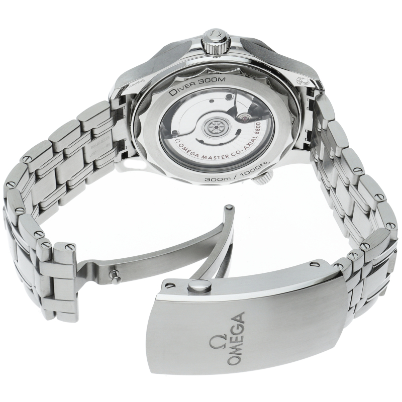 オメガの定番ダイバーズウォッチです。2018年に発表された最新型です。オメガ最新式の機械であるキャリバー8800を搭載しマスターコーアクシャル化されました。シースルーバックとなり、中の機械を見て楽しむ事ができます。