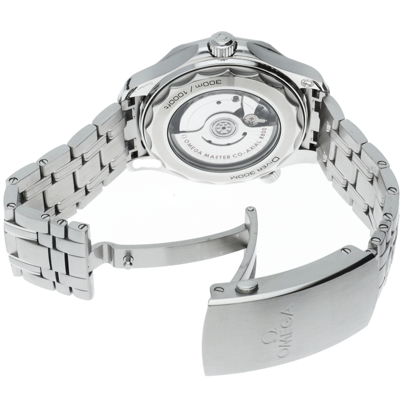 オメガの定番ダイバーズウォッチです。2018年に発表された最新型です。オメガ最新式の機械であるキャリバー8800を搭載しマスターコーアクシャル化されました。シースルーバックとなり、中の機械を見て楽しむ事ができます。