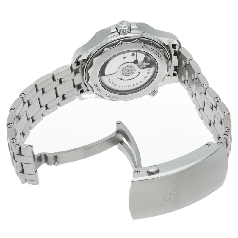 オメガの定番ダイバーズウォッチです。2018年に発表された最新型です。オメガ最新式の機械であるキャリバー8800を搭載しマスタークロノメーター化されました。シースルーバックとなり、中の機械を見て楽しむ事ができます。