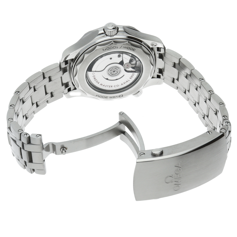 オメガの定番ダイバーズウォッチです。2018年に発表された最新型です。オメガ最新式の機械であるキャリバー8800を搭載しマスタークロノメーター化されました。シースルーバックとなり、中の機械を見て楽しむ事ができます。