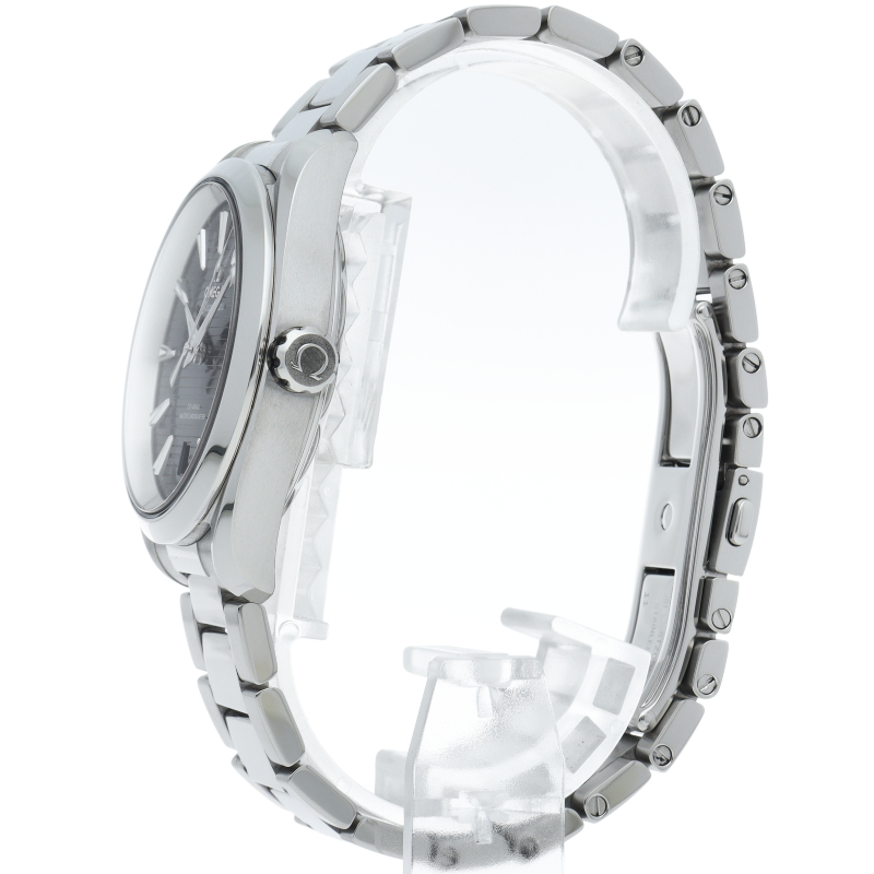 海に携わってきたオメガの長い歴史を代表する「シーマスター アクアテラ」 コレクション。シンメトリックな38mmのケースはステンレススティール製で、ケースバックにはウェーブ模様で縁取られたデザインが施されています。