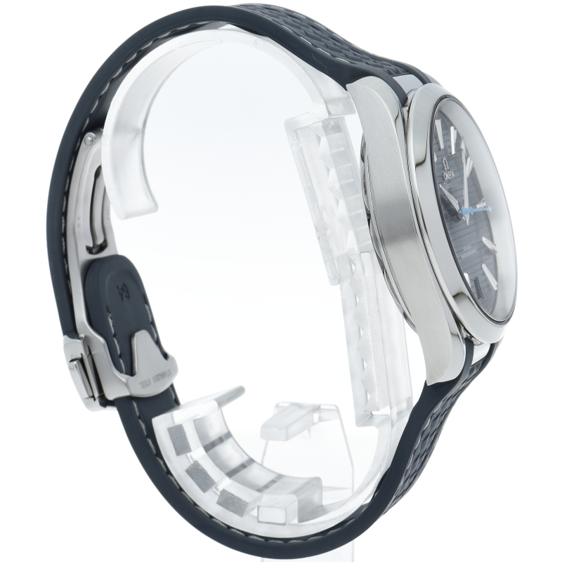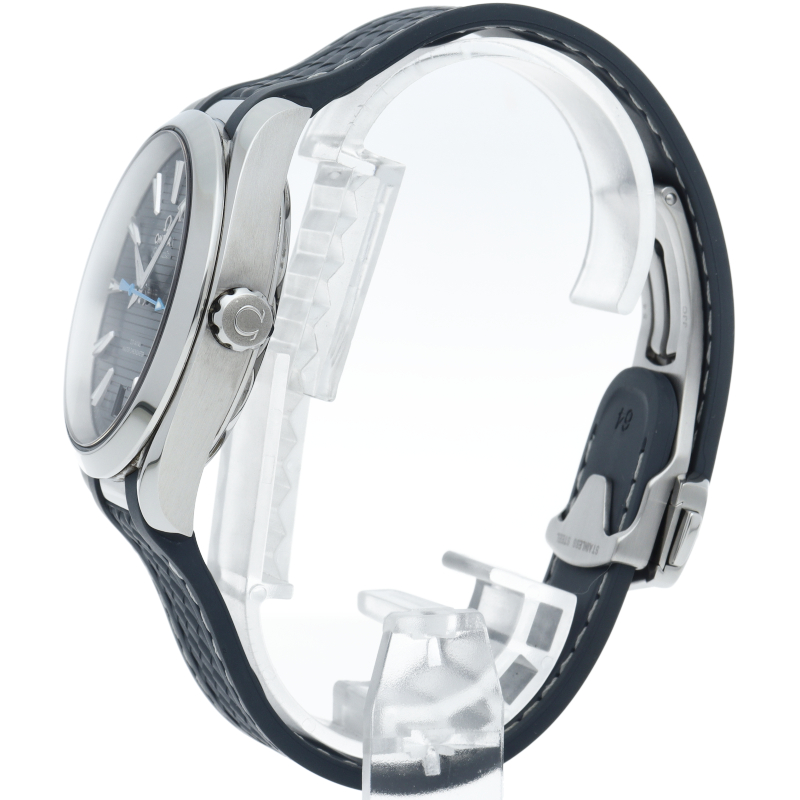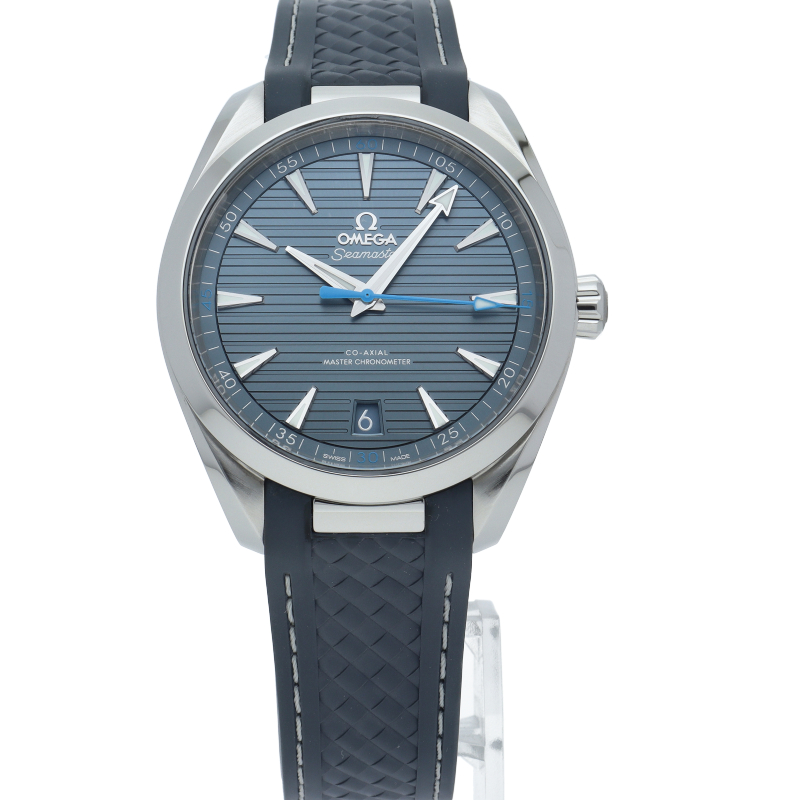 海に携わってきたオメガの長い歴史を代表する「シーマスター アクアテラ」 コレクション。ブルーのダイアルは、豪華ヨットのウッドデッキをイメージさせる印象的なデザイン「チークコンセプト」と呼ばれる横ストライプのモチーフが採用されています。ロジウムプレート加工が施された針とインデックスにはホワイトのスーパールミノヴァが塗布され、6時位置には日付表示が備えられています。キャリバー8900搭載。
