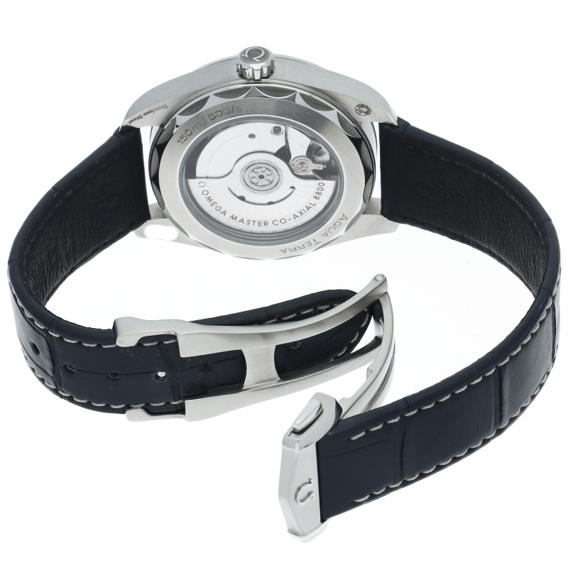 海に携わってきたオメガの長い歴史を代表する「シーマスター アクアテラ」 コレクション。シンメトリックな38mmのケースはステンレススティール製で、ケースバックはスケルトンとなっております。