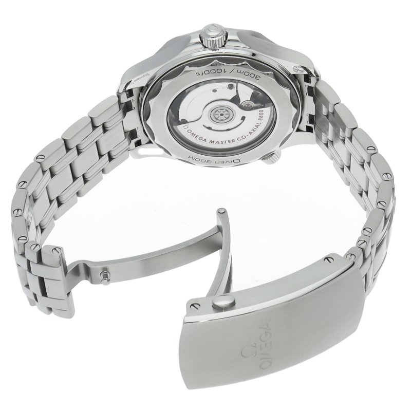 オメガの定番ダイバーズウォッチです。2018年に発表された最新型です。オメガ最新式の機械であるキャリバー8800を搭載しマスタークロノメーター化されました。シースルーバックとなり、中の機械を見て楽しむ事ができます。