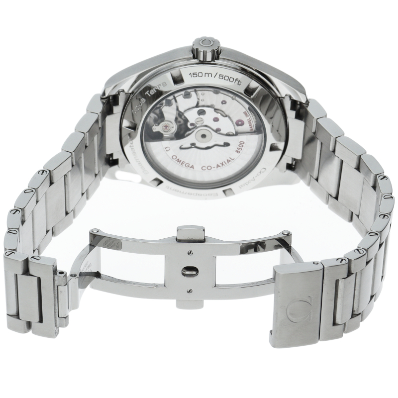 防水時計の代名詞オメガ・シーマスターに属する、スタンダード・コレクションが「シーマスター アクアテラ」です。スタイリッシュなデザインと革新的なテクノロジーが融合したコレクションです。フリースプラングテンプを採用した、60時間のパワーリザーブを備える、オメガ自社製自動巻きムーブメント・オメガ8500を搭載しています。ケースバックはシースルー仕様となっております。