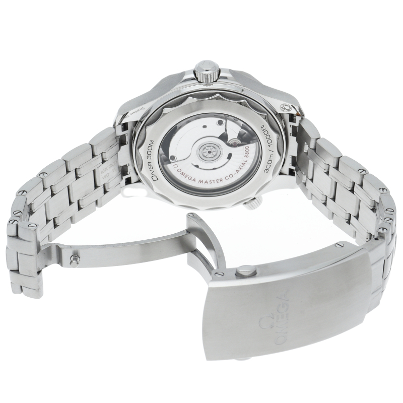 オメガの定番ダイバーズウォッチです。2018年に発表された最新型です。オメガ最新式の機械であるキャリバー8800を搭載しマスタークロノメーター化されました。シースルーバックとなり、中の機械を見て楽しむ事ができます。