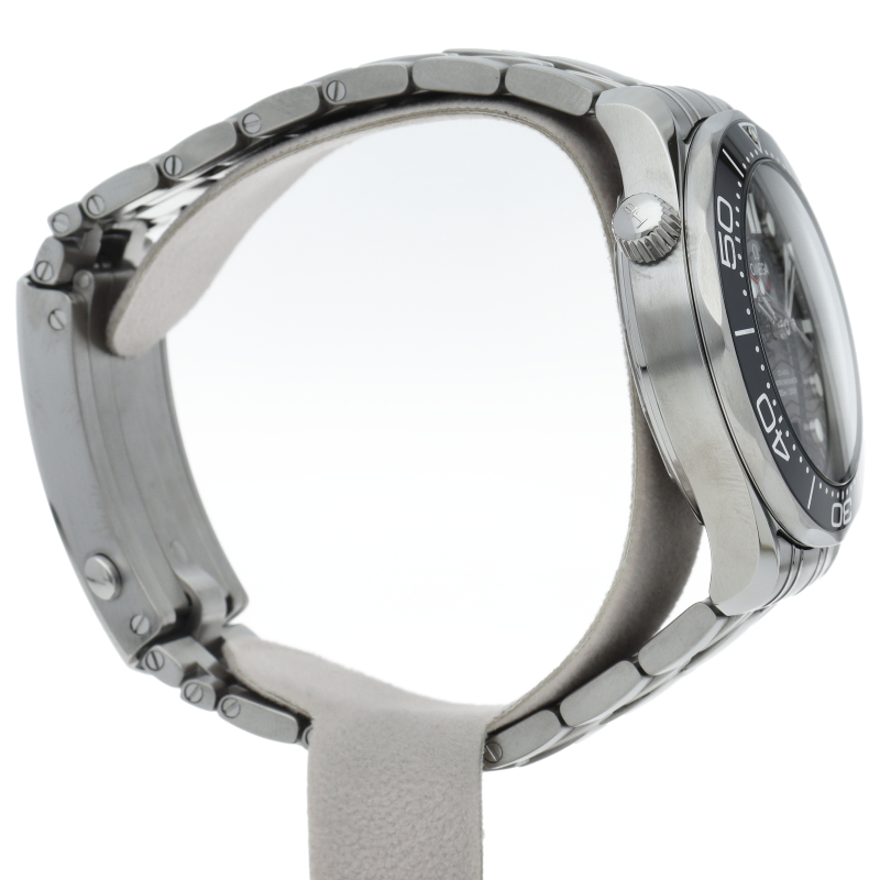 オメガの定番ダイバーズウォッチです。2018年に発表された最新型です。オメガ最新式の機械であるキャリバー8800を搭載しマスタークロノメーター化されました。シースルーバックとなり、中の機械を見て楽しむ事ができます。
